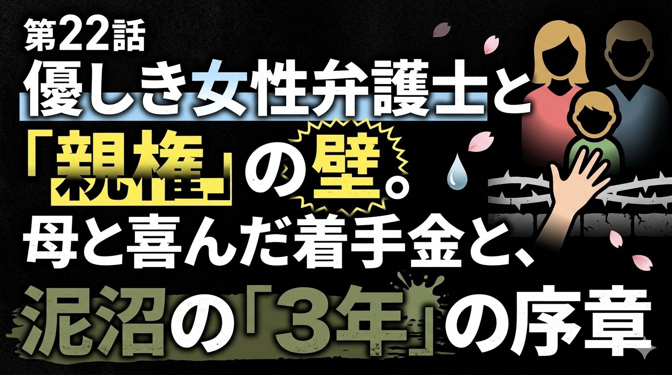 「暗くて長いトンネルの先に、ようやく一条の光が見えた気がした。モラハラ元夫からの『親権は俺だ』という脅しに震える私に、『戦いましょう』と力強く頷いてくれた優しき女性弁護士。想像よりはるかに安い着手金に、母と手を取り合って喜んだあの日。しかし、それが精神を削り続ける地獄の『3年間』の始まりだとは、当時の私は知る由もなかった。」