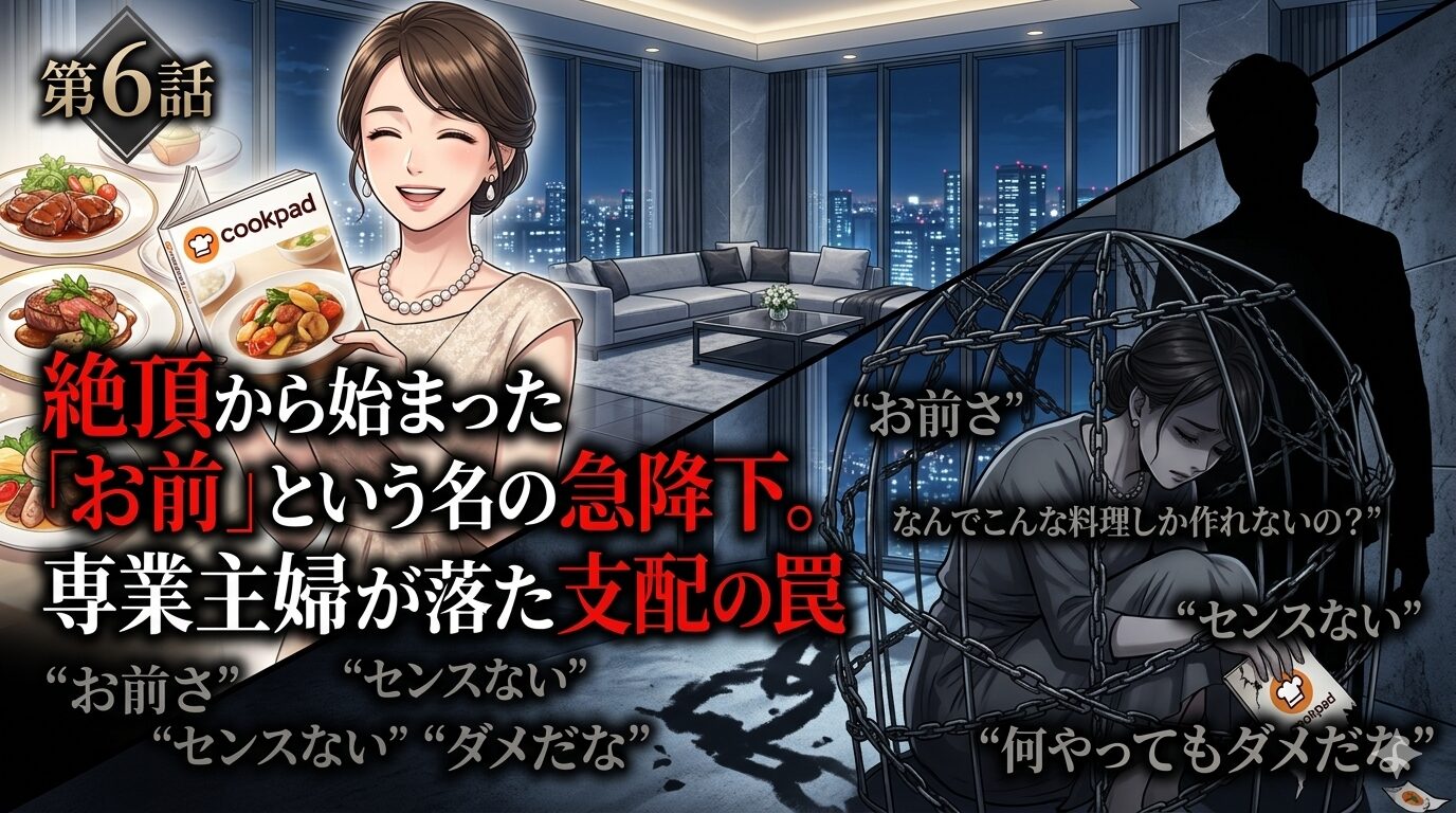 憧れの専業主婦ライフ。毎日手の込んだ料理を作り、私は間違いなく幸せの絶頂にいるはずでした。しかし、日常に響く「お前さ」「ほんとセンスない」という夫からの冷たい言葉たち。HSP特有の敏感なセンサーが「何かがおかしい」と警告を発していたのに、私は違和感を押し殺し、自分を責め続けてしまったのです。これは、幸せの絶頂から『支配の檻』へと急降下していった、洗脳と自己喪失のリアルな記録です。