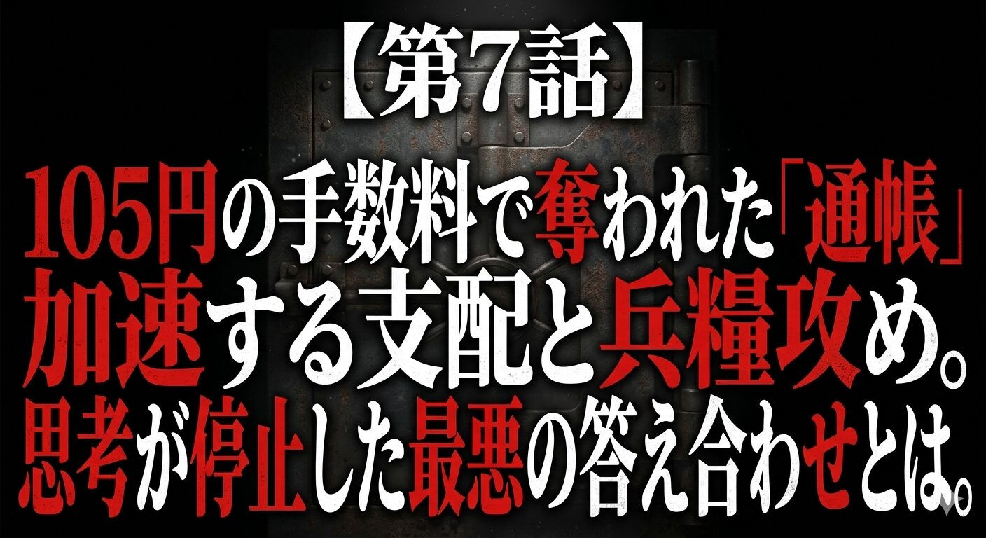 たった105円のATM手数料。それを口実に、私の手から「通帳」という名の命綱が奪われた。元夫による容赦ない生活費の制限(兵糧攻め)と、エスカレートする支配。なぜ私は逃げられなかったのか? 思考が停止した果てに行き着いた、身の毛もよだつ「最悪の答え合わせ」とは。