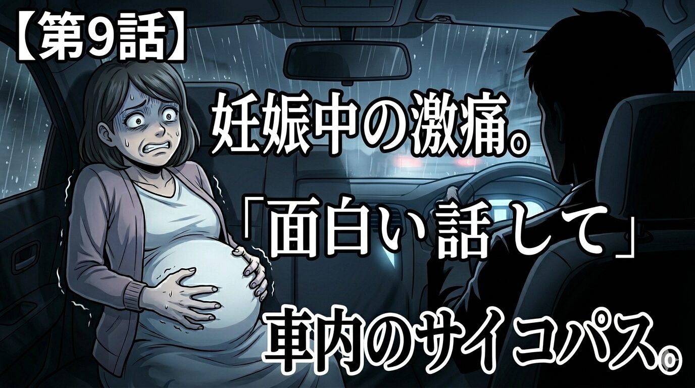 妊娠中期、深夜の車内で襲った激痛。大きなお腹を抱えて怯える私に、運転席の夫が言い放った言葉は「俺の予定が台無しだ」「なんか面白い話して」でした。赤ちゃんの心配より、彼になんて言われるかが怖い……。閉ざされた車内で私が直面した、冷酷すぎるサイコパスのリアル。