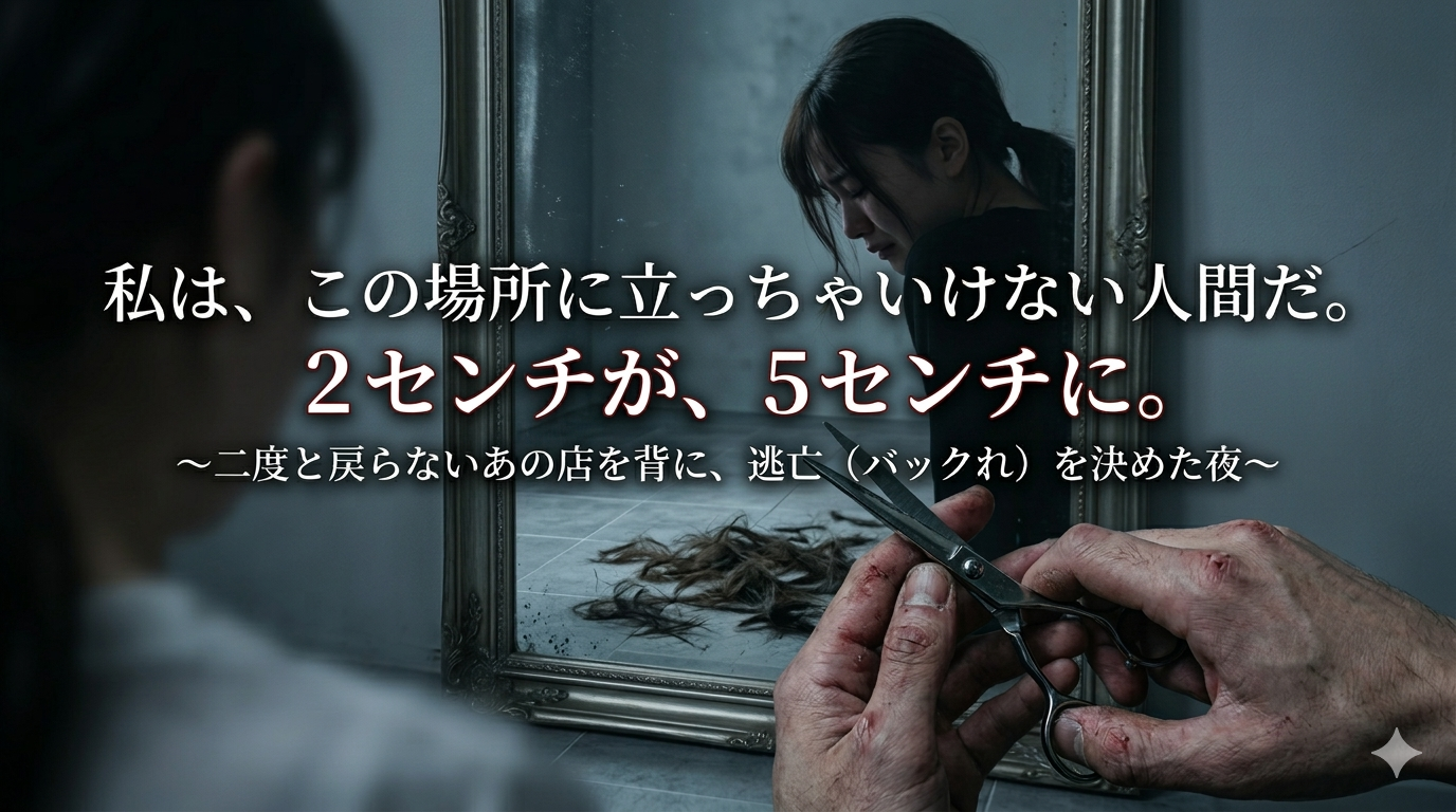 「2センチだけ整えてください😊」その優しいオーダーに応えたはずの鏡の中には、5センチ以上切り落とされた無惨な姿が。始発から終電まで身を粉にして働いた美容師2年目。HSPの私が「努力の方向」を致命的に間違えていたことに気づき、人生最大の夢を自らの手で損切りした、絶望と気づきの第1話。